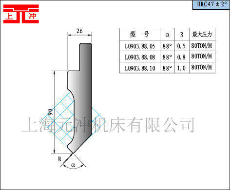 上海元冲机床厂专业生产普通和数控折弯机模具、油压机折弯模具、压床折弯模具、段差折弯模具、无压痕折弯模具、三点式折弯模具、折弯模具装夹压板、细长导轨、数控折弯刀剪板机刀片、防压痕膜的企业,本公司在折弯模具领域有多年的设计和加工经验。可按照客户的材料和尺寸要求定制各种规格的折弯机上下模和剪板机上下刀片。同时也为客户提供折弯刀和剪板机刀片修磨服务。
