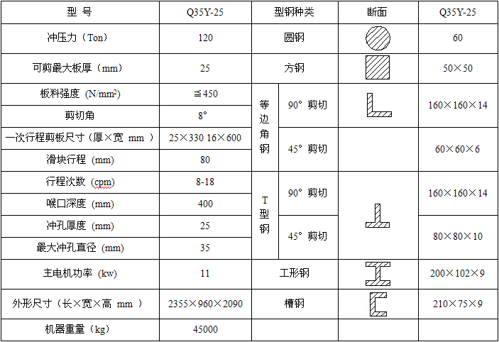 联合冲剪机Q35Y-25参数: